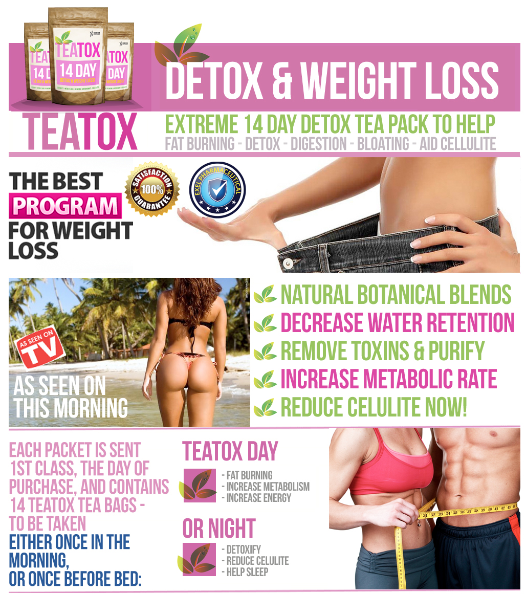 Each packet is sent 1st class, the day or purchase, and contains 14 teatox tea bags to be taken